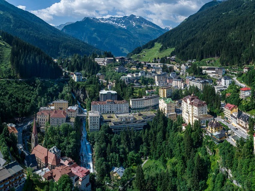 Südlich von Salzburg befindet sich der weltbekannte österreichische Kur- und Wintersportort Bad Gastein mitten im Nationalpark Hohen Tauern. Bekannt für die Hotels und Villen aus der Belle Époque, die an den bewaldeten Steilhängen gebaut wurden. Ein herrlicher Blick fällt vom Wasserfallweg auf den zentralen Gasteiner Wasserfall, der in das Tal stürzt. Der Gasteiner Heilstollen ist ein Gesundheitszentrum der Radontherapie und hilft bei rheumatisch-entzündlichen Erkrankungen des Bewegungsapparates, der Atemwege und der Haut.